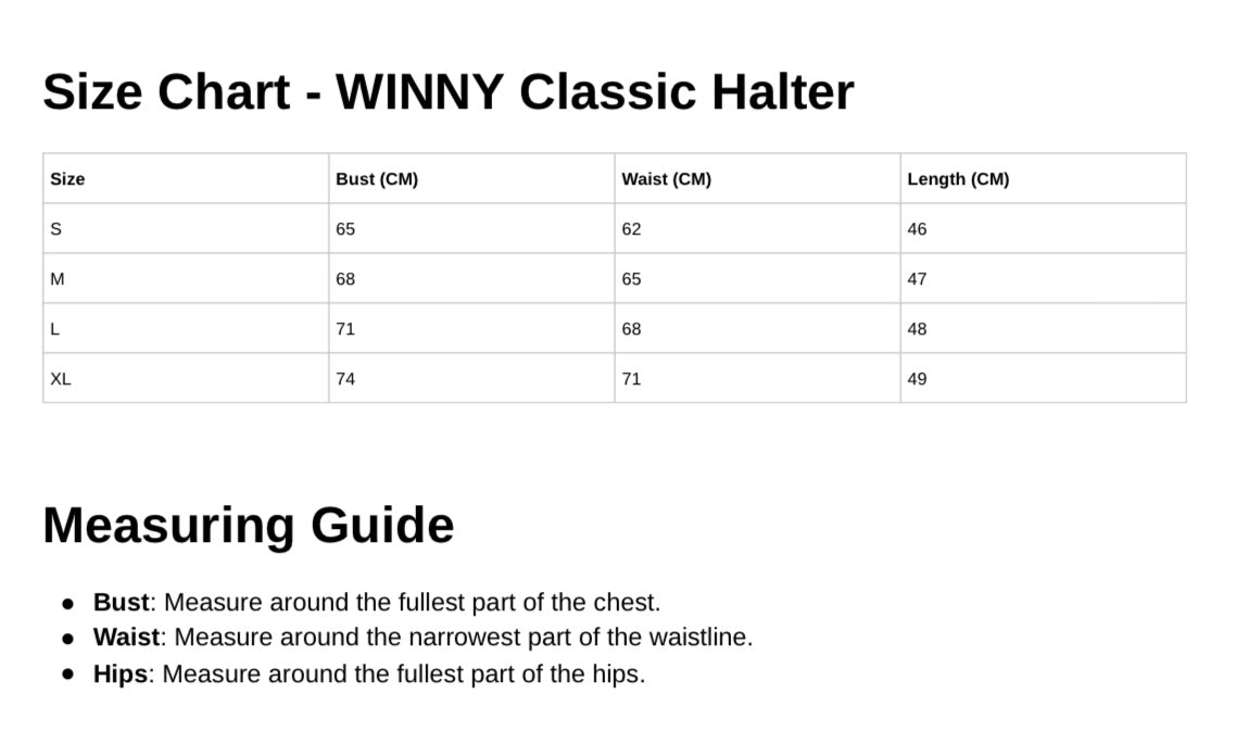 Turn heads in our WINNY Classic Halter a flattering halter that moves with you. Soft, feminine, and powerful — because winning looks good on you.